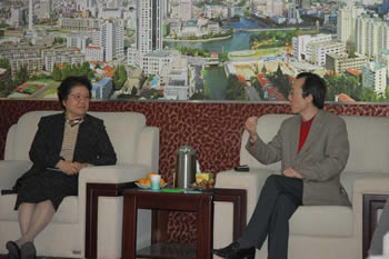 日,上海紡織控股(集團)公司副董事長倪志華一行來通訪問。我司董事長楊揚、總經理徐憲華會見來賓,并交換了各自情況。