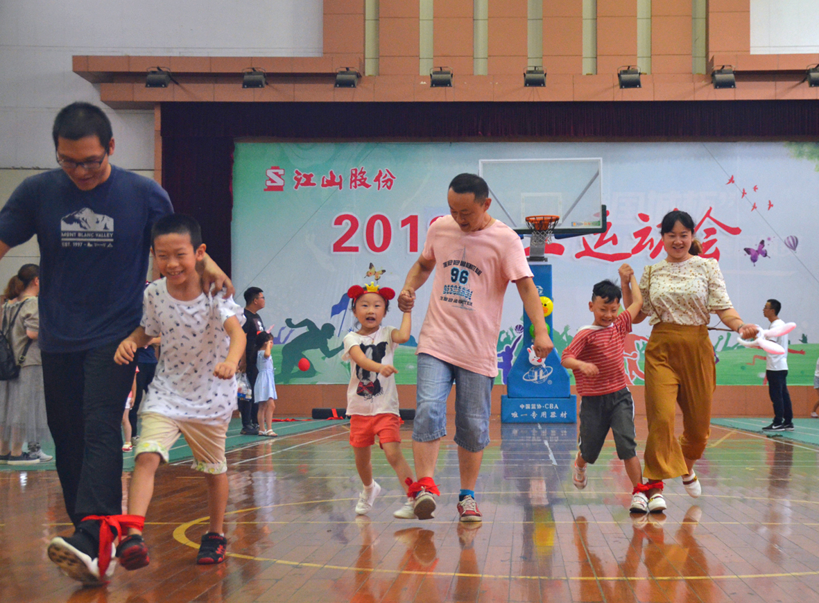 在各單項活動中,孩子們與家長一起相互配合,齊心協力,場面熱烈,大家玩得不亦樂乎。活動結束后,家長和孩子們主動協助將運動器材送到了文體中心倉庫,并把室內垃圾打掃干凈,體現了“江山”員工愛廠如家的精神風貌。