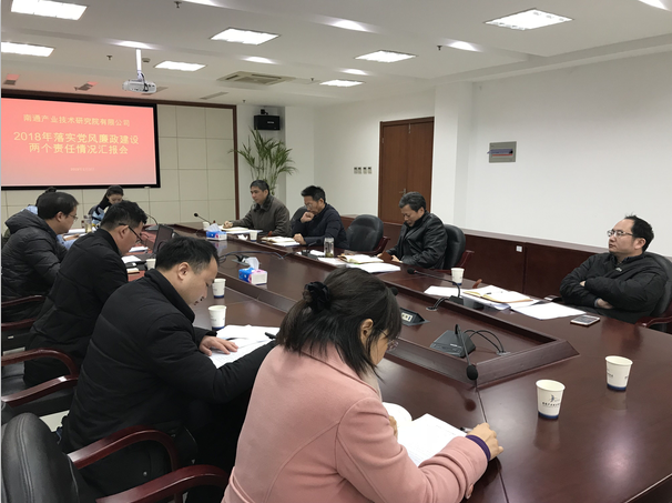 1月3日,南通產業技術研究院召開了2018年黨風廉政建設工作情況匯報會。會上領導班子成員、“四部兩中心”以及智慧建筑研究院、先進通信研究院分別匯報了黨風廉政建設工作情況,公司黨委書記、總經理范昹就進一步深化公司黨風廉政建設工作提出了相關要求。 公司黨委書記、總經理范昹指出,新形式下加強黨風廉政建設十分重要且緊迫,各部門要自覺投身,嚴格執行,全體人員要進一步提升學習意識,貫徹習近平新時代中國特色社會主義思想,推動認識再上新臺階,同時要嚴明政治紀律和政治規矩,堅持以制度管人管事,規范建章立制,形成長效機制,對本單位本部門存在的崗位風險點要積極查找,認真整改,防微杜漸、抓早抓小,著力營造風清氣正的良好政治生態。