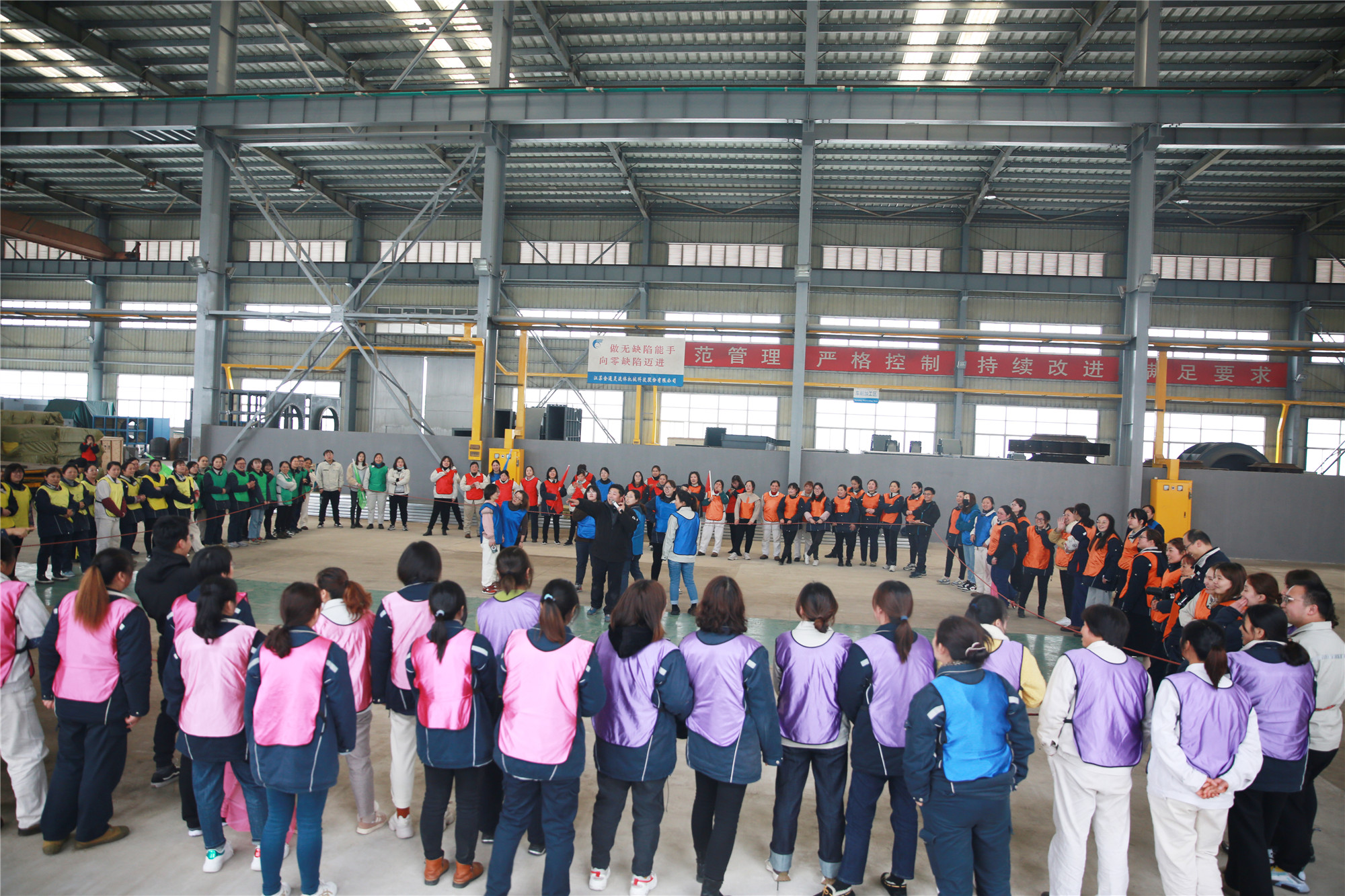 3月8日下午, 一百多名女職工歡聚2號車間,在教練的帶領(lǐng)下,分成了10個小組,按照要求分別設(shè)計了自己隊的隊名、隊徽、口號、隊歌,并依次展示了團隊風(fēng)采。在充滿樂趣的熱身小游戲后,便開始了“坦克大戰(zhàn)”、“環(huán)游世界球”、“動力繩圈”等團隊拓展項目。在彼此信任、相互溝通、集體協(xié)作的氛圍中,各小組成功完成了此次拓展任務(wù)。參加此次活動的廣大女職工們有長期伏案的科員,有奮戰(zhàn)一線的工人,也有集團中高層領(lǐng)導(dǎo),在新組建的團隊中,大家拋開身份,融入隊伍,在隊長的帶領(lǐng)下,克服困難,團結(jié)一心,共同為隊伍加分增光。 此次拓展活動,既緩解了女職工們工作的疲憊和壓力,又增進了同事間的友誼,增強了團隊凝聚力,大家在娛樂中感受到團隊的力量。集團黨委副書記、工會主席李建兵給女工們送上節(jié)日的祝福,他表示,廣大女職工們在此次活動中充分展示了巾幗風(fēng)采,彰顯出金通靈女工隊伍的魅力,在今后的工作中,大家要時刻握緊手中的“動力繩”,勁往一處使,力往一處用,跟著團隊的步調(diào),以奮發(fā)昂揚的姿態(tài)繼續(xù)前行! |