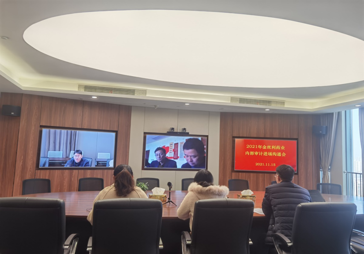 11月15日上午,在精華制藥集團視頻會議室,審計監察部與金絲利藥業經營層召開了一場線上內部審計進場溝通會。會議利用遠程視頻的形式,與被審單位進行非接觸式對接溝通。