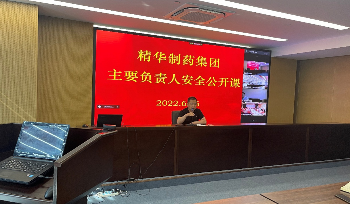 6月16日,精華制藥集團(tuán)股份有限公司總經(jīng)理周云中在總部大樓22層會(huì)議室講授安全公開課。集團(tuán)公司全體員工參會(huì)、外地各分、子公司員工視頻參會(huì)。