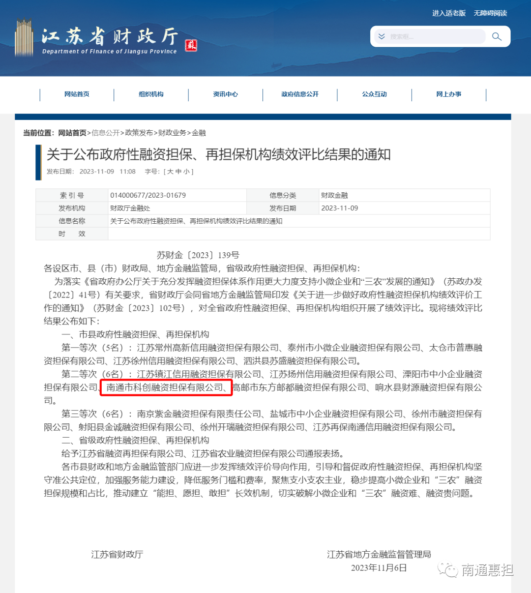 科創(chuàng)融資擔(dān)保躋身全省前十!江蘇省政府性融資擔(dān)保機(jī)構(gòu)績(jī)效評(píng)比結(jié)果出爐