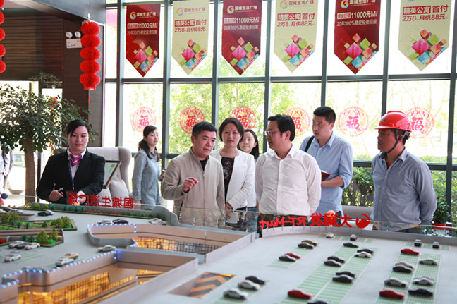 張市長一行饒有興趣地參觀駐足在國城生活廣場售樓處展廳沙盤前,仔細查看了項目平面功能布置,聽取了國城公司領導的情況匯報。他在對項目建設工作給予充分肯定的同時,指出觀音山新城作為市區(qū)的新興板塊,中心城市新的增長,及承載著城市轉(zhuǎn)型升級的重任。國城生活廣場作為市政府規(guī)劃觀音山新城區(qū)重點建設項目,國城公司要充分利用政府提出 “大眾創(chuàng)業(yè)、萬眾創(chuàng)新”理念這一有利契機,認真研究,借鑒相關商業(yè)地產(chǎn)、市場經(jīng)驗,科學把握業(yè)態(tài)布局,改進營銷手段,在帶動區(qū)域人氣的同時,確保健康發(fā)展,為全市經(jīng)濟發(fā)展注入新的活力。